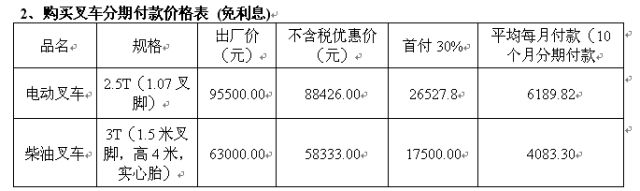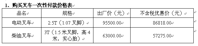 为落实政府对物流企业降本增效的扶持政策,进一步降低物流企业运营成本,百茂物流城现对购买以下叉车的园区商户给予优惠,优惠如下: